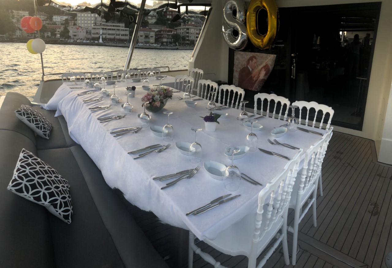 Tekne MLN ile sizlerde özel günlerinizi daha unutulmaz kılabilirsiniz. Deneyimli ve uzman personellerimizin sizlere hizmet vereceği ve denize açılabileceğiniz bu geniş kapasiteye sahip teknemizde, nişan, kına ve düğün organizasyonları yapabilir ayrıca iş, okul veya parti tarzı organizasyonlar düzenleyebilirsiniz. Seçiminize bağlı olarak yemek hizmeti de sunduğumuz teknemizde, sizler için gerekli olan tüm donanımlar mevcuttur. Sizde tekne hakkında bilgi almak ve fiyat araştırması yapmak istiyorsanız, bizleri arayarak bu bilgilere ulaşabilirsiniz.